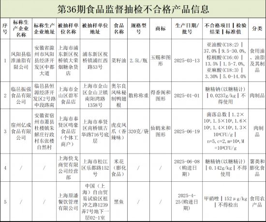 上海市市场监管局引见,2025年第36期省级食物平安抽检消息发布。本次抽检消息涉及7大类食物,包罗蛋成品、豆成品、肉成品、食用农产物、食用油、油脂及其成品、薯类和膨化食物和糖果成品。按照《中华人平易近国食物平安法》《上海市食物平安条例》等,现将市市场监管局开展本市食物平安抽检相关消息发布如下: